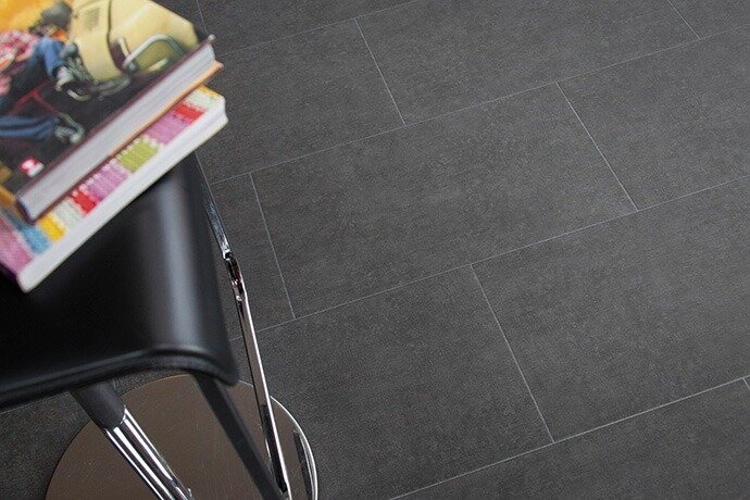 Stunning Amtico Signature tile in Exposed Concrete with brushed chrome nosings